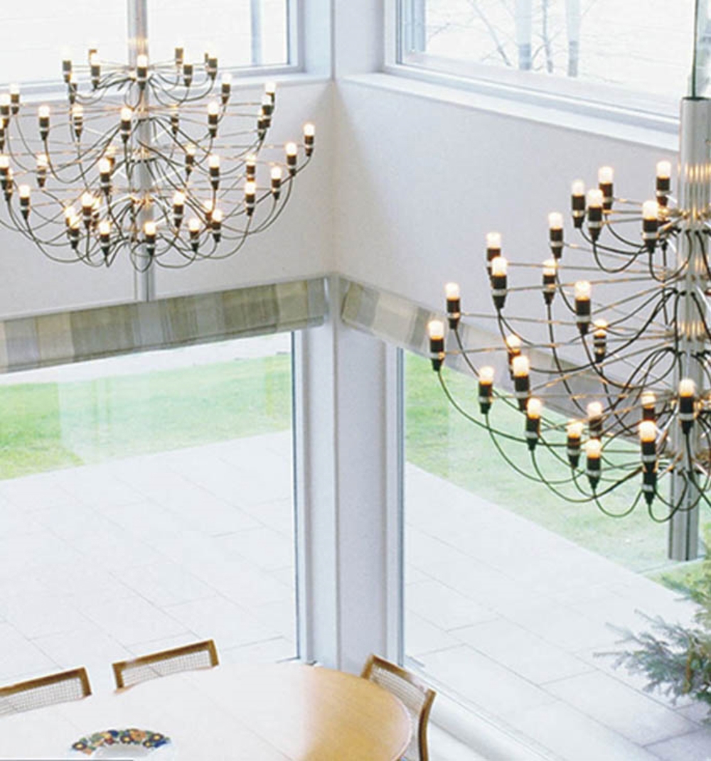 Flos 2097 to ikoniczny żyrandol, który łączy klasyczną elegancję z nowoczesnym minimalizmem. Zaprojektowany przez Gino Sarfatti w 1958 roku, stał się międzynarodową ikoną designu i wyrazistym elementem zarówno w prywatnych domach, jak i profesjonalnych wnętrzach.