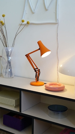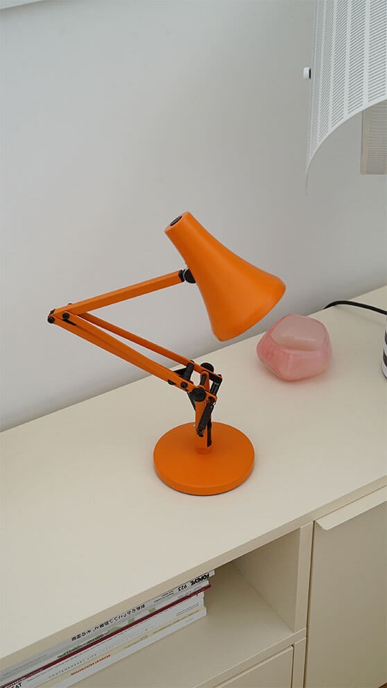 90 Mini Mini lampa stołowa w kolorze pomarańczowym z matowym wykończeniem ma niezwykle funkcjonalny design, który pozwala na obrót lampy o 360 stopni przy kloszu i podstawie. Unikalna lampa stołowa korzysta z kabla USB-A, który jest dołączony. Dzięki temu można łatwo podłączyć lampę do np. portu USB-A komputera, aby uzyskać światło do pracy w domu lub do dokładnego przestudiowania przepisu w kuchni.