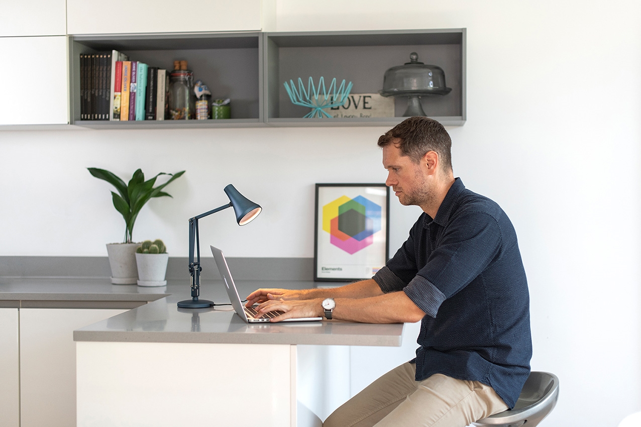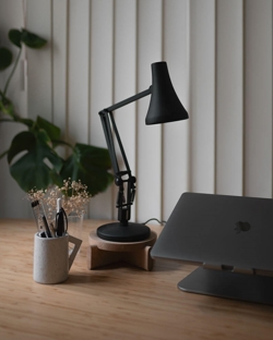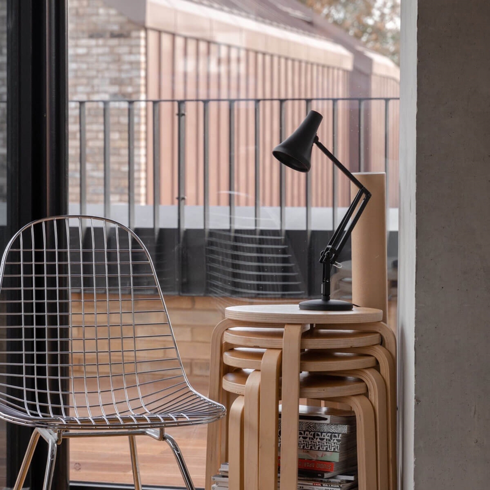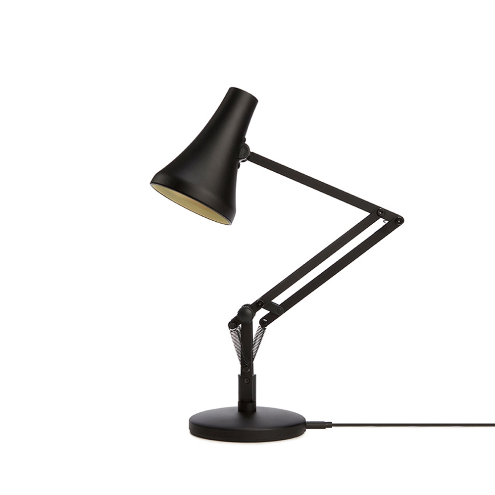 90 Mini Mini lampa stołowa w kolorze czarnym z wykończeniem z anodowanego szczotkowanego aluminium ma niezwykle funkcjonalny design, który pozwala na obrót lampy o 360 stopni przy kloszu i podstawie. Unikalna lampa stołowa korzysta z kabla USB-A, który jest dołączony. Dzięki temu można łatwo podłączyć lampę do np. portu USB-A komputera, aby uzyskać światło do pracy w domu lub do dokładnego przestudiowania przepisu w kuchni.