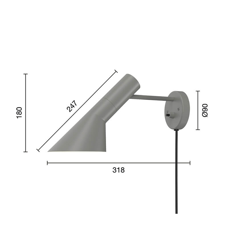 Louis Poulsen AJ kinkiet, szary - Zaprojektowany przez Arne Jacobsen