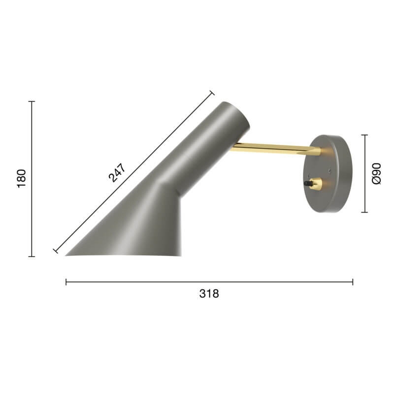 Louis Poulsen AJ kinkiet z włącznikiem, szary/mosiądz - zaprojektowany przez Arne Jacobsen