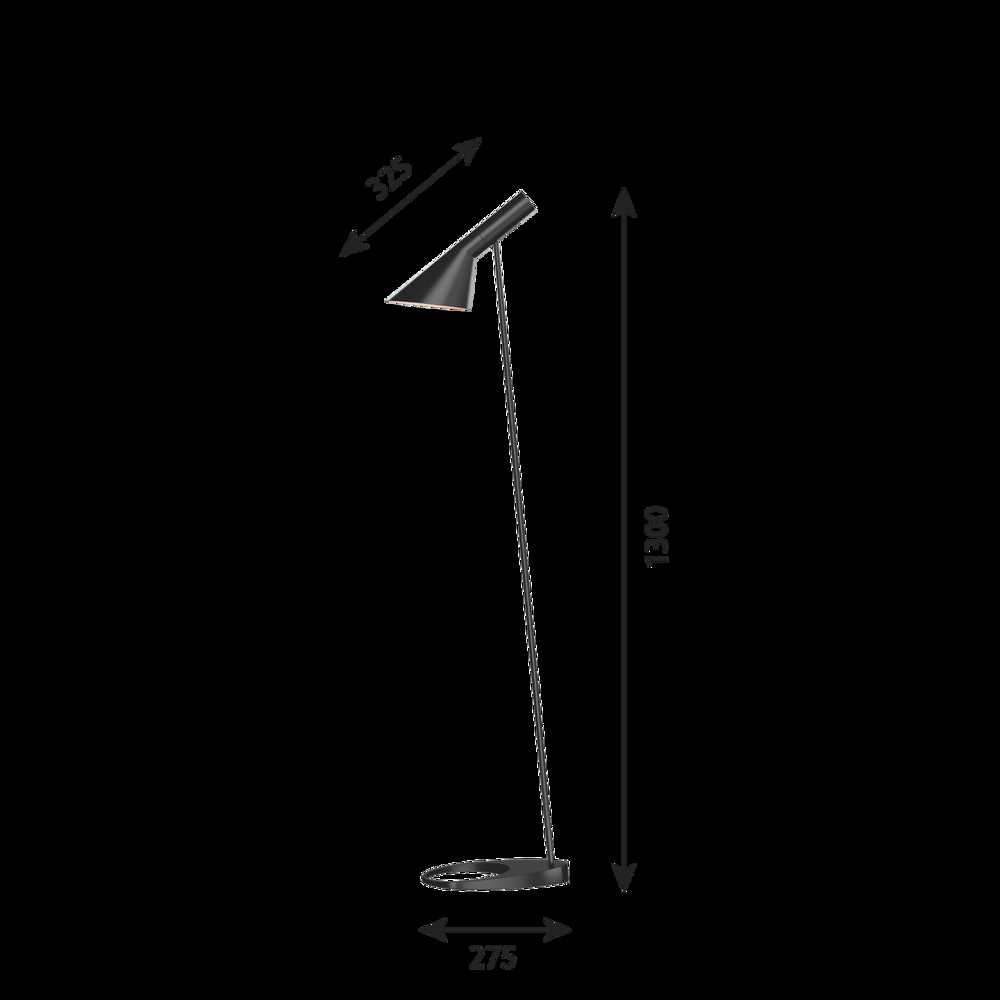 Louis Poulsen AJ lampa podłogowa, czarna - zaprojektowana przez Arne Jacobsen.