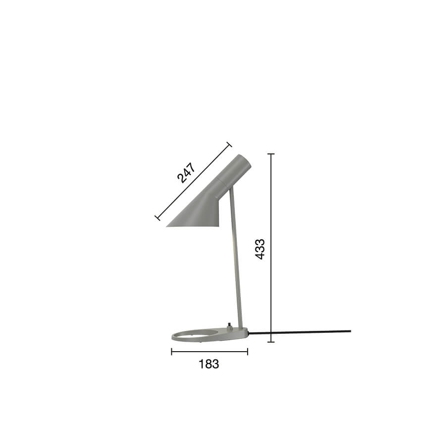 Louis Poulsen AJ Mini lampa stołowa, szara - zaprojektowana przez Arne Jacobsen