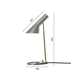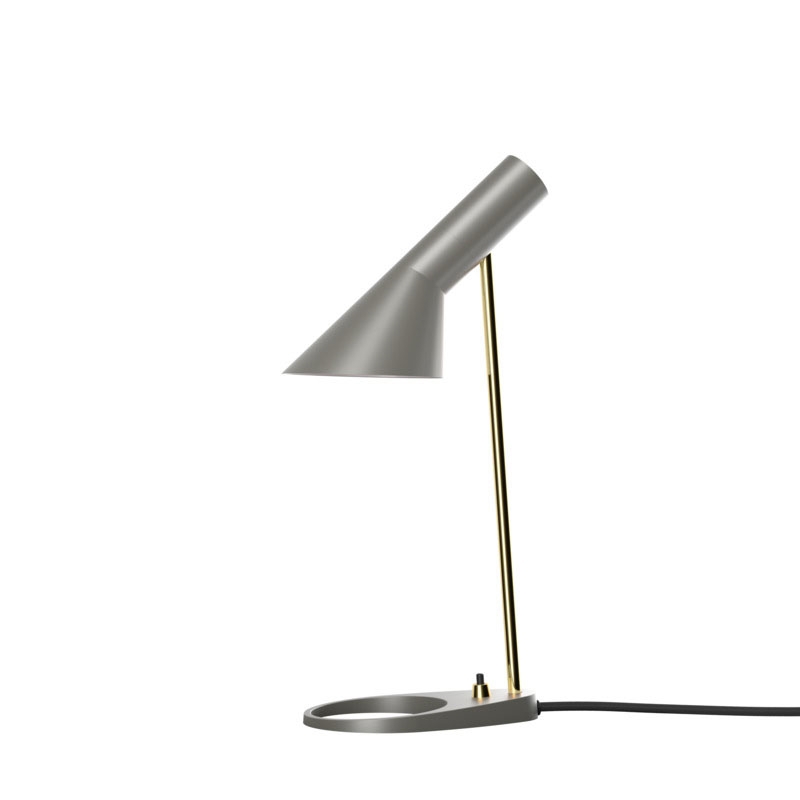 Louis Poulsen AJ Mini lampa stołowa, szary/mosiądz - zaprojektowana przez Arne Jacobsen