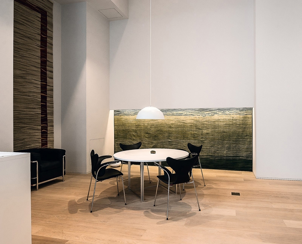 AJ Royal został zaprojektowany dla hotelu SAS Royal w Kopenhadze w 1957 roku, który jest wypełniony ikonicznymi projektami Arne Jacobsen.