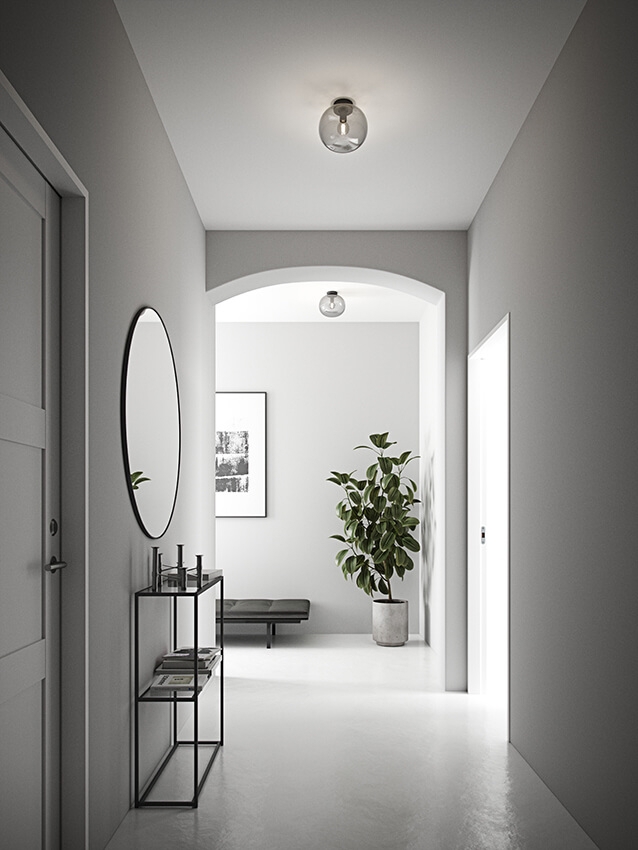Piękna lampa sufitowa Alton dostępna jest w wersji dymionej i białej. Lampa sufitowa Alton w wersji dymionej wykonana jest z dmuchanego szkła. Jest bardzo prosta, co nadaje jej minimalistyczny wyraz w pomieszczeniu.