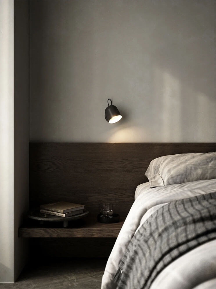 Angle ma satynowo-matową powierzchnię i jest inteligentnym kinkietem, który można używać jako lampkę nocną lub lampkę do czytania w salonie. Klosz lampy jest magnetycznie przymocowany do podstawy i można go łatwo regulować, aby skierować światło według potrzeb. Praktyczny port USB na podstawie umożliwia ładowanie telefonu lub innego urządzenia bezpośrednio z lampy.
