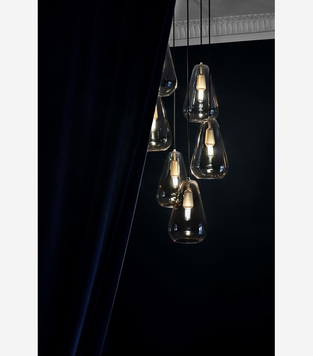 Seria lamp Anoli to wysoka jakość rzemiosła i najlepsze materiały. Anoli jest prosty w formie i składa się z delikatnych, dmuchanych ustnie szklanych kloszy w kształcie kropli.
