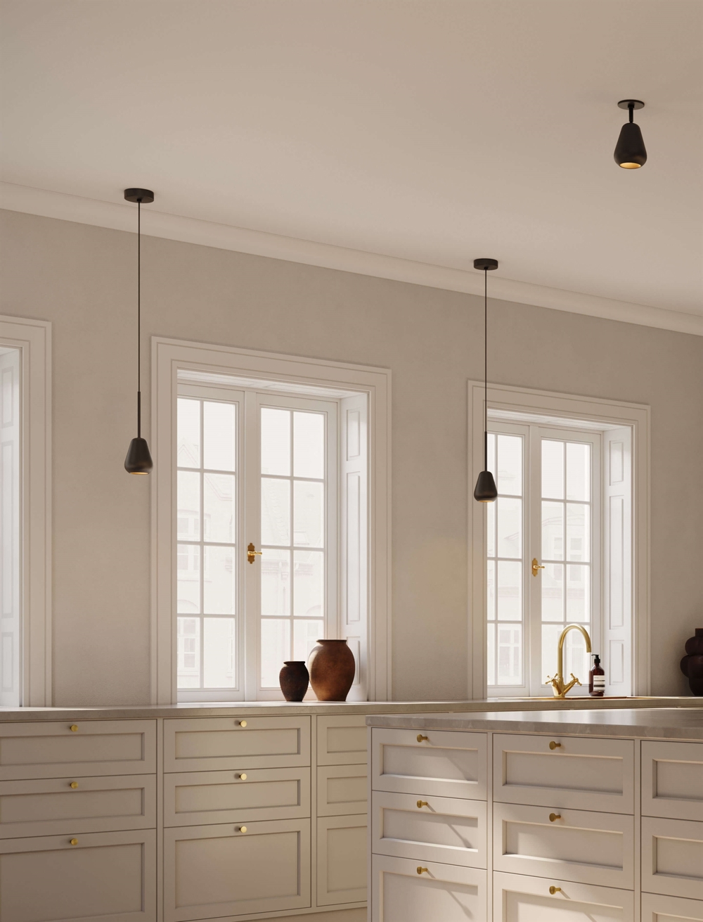 Elegancki Anoli Spot pendel efektywnie wykorzystuje przestrzeń, minimalizuje cienie i zapewnia skoncentrowane oświetlenie. Pendel ma proste linie nawiązujące do kształtu kropli deszczu i jest dostępny oprócz czarnego również w kombinacji nordic gold i białym. Użyj Anoli Spot pendel w kuchni lub w innym miejscu, gdzie potrzebne jest pendel z oświetleniem punktowym.