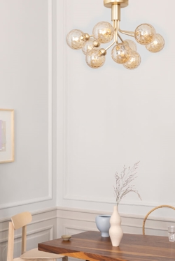 Apiales 9 lampa sufitowa montowana jest bezpośrednio na suficie i ma niską wysokość 40 cm. To daje lampie dużą wszechstronność - i teraz możliwe jest posiadanie lampy sufitowej/żyrandola tam, gdzie sufit jest niski lub w przejściach.