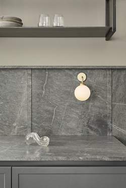 Kinkiet Apiales składa się z jednej dmuchanej opalowej szklanej kopuły oraz szczotkowanych mosiężnych detali. Ten elegancki kinkiet nadaje klasyczny wygląd pomieszczeniu, nie zakłócając innych elementów w przestrzeni.