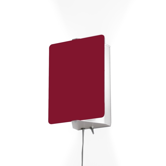 Applique À Volet Pivotant kinkiet ma ramę wykonaną z aluminium, pomalowaną na biało, oraz klapkę z przodu, dostępną w kolorach: czerwonym, żółtym, niebieskim, czarnym, aluminiowym i ze stali nierdzewnej.