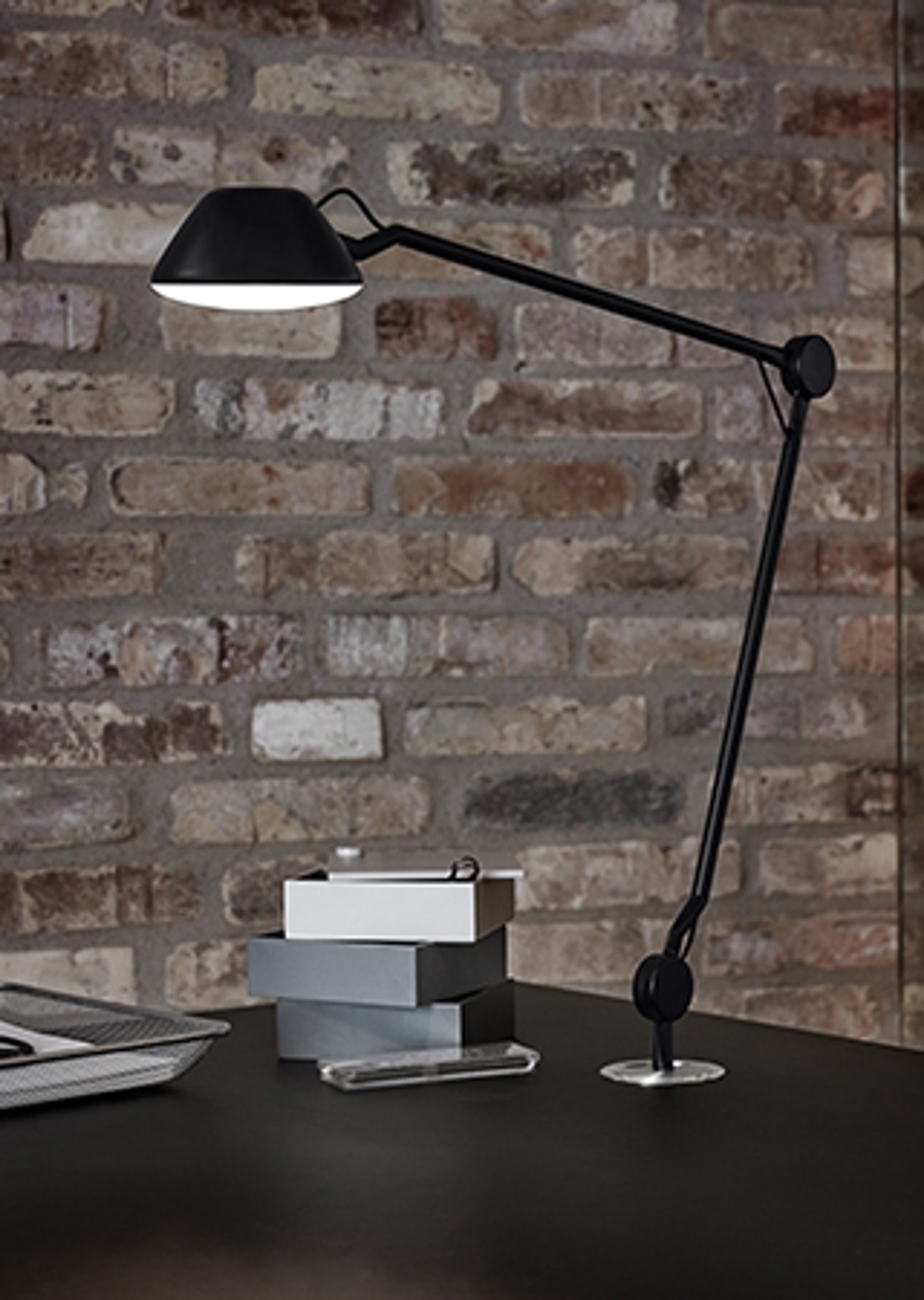 Przewód jest ukryty wewnątrz ramienia. AQ01 można podłączyć do „plug-in” lub umieścić na stole w podstawie. Lampa wygląda również elegancko z uchwytem ściennym jako lampa do czytania, w strefie lounge lub jako światło do czytania przy łóżku.