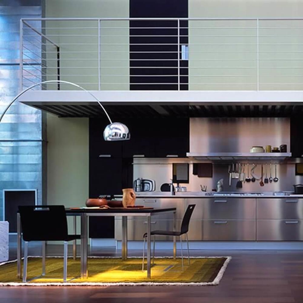Arco łączy architektoniczną elegancję z praktycznym oświetleniem. Długa, zakrzywiona ramię pozwala na umieszczenie źródła światła centralnie nad stołem lub sofą, bez potrzeby montażu sufitowego. Solidna podstawa zapewnia stabilność, a regulowana konstrukcja lampy ułatwia dostosowanie położenia światła.