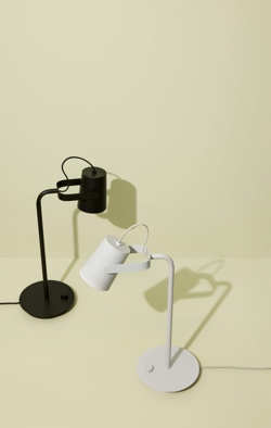 Ardent dostępna jest jako lampa ścienna i jako lampa stołowa w kolorze jasnoszarym lub czarnym.