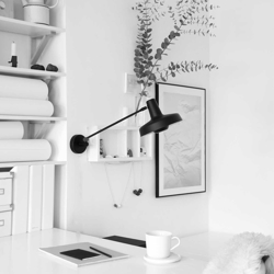 ARIGATO krótka lampa ścienna z przewodem, czarna