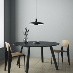 Lampy Arigato składają się z korpusu z rur stalowych oraz aluminiowego klosza. Powierzchnia jest matowa, czarna lub biała, pokryta lakierem proszkowym.
