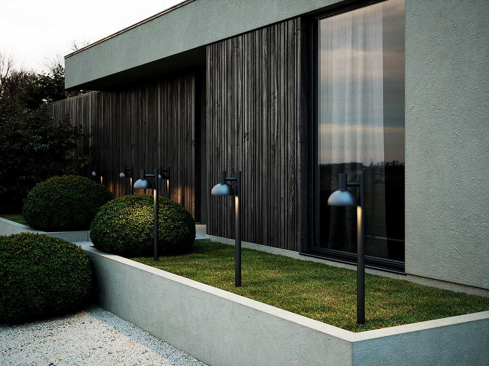 Umieść lampę na zewnątrz i pozwól, aby duży klosz rozświetlił ciemność.