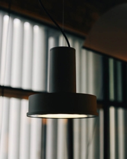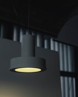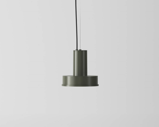 Mniejsza wersja lampy wiszącej Arne Domus. Wykonana z matowego aluminium i dostępna w 4 różnych kolorach: białym, aluminiowo-szarym, ciemnozielonym i musztardowym.