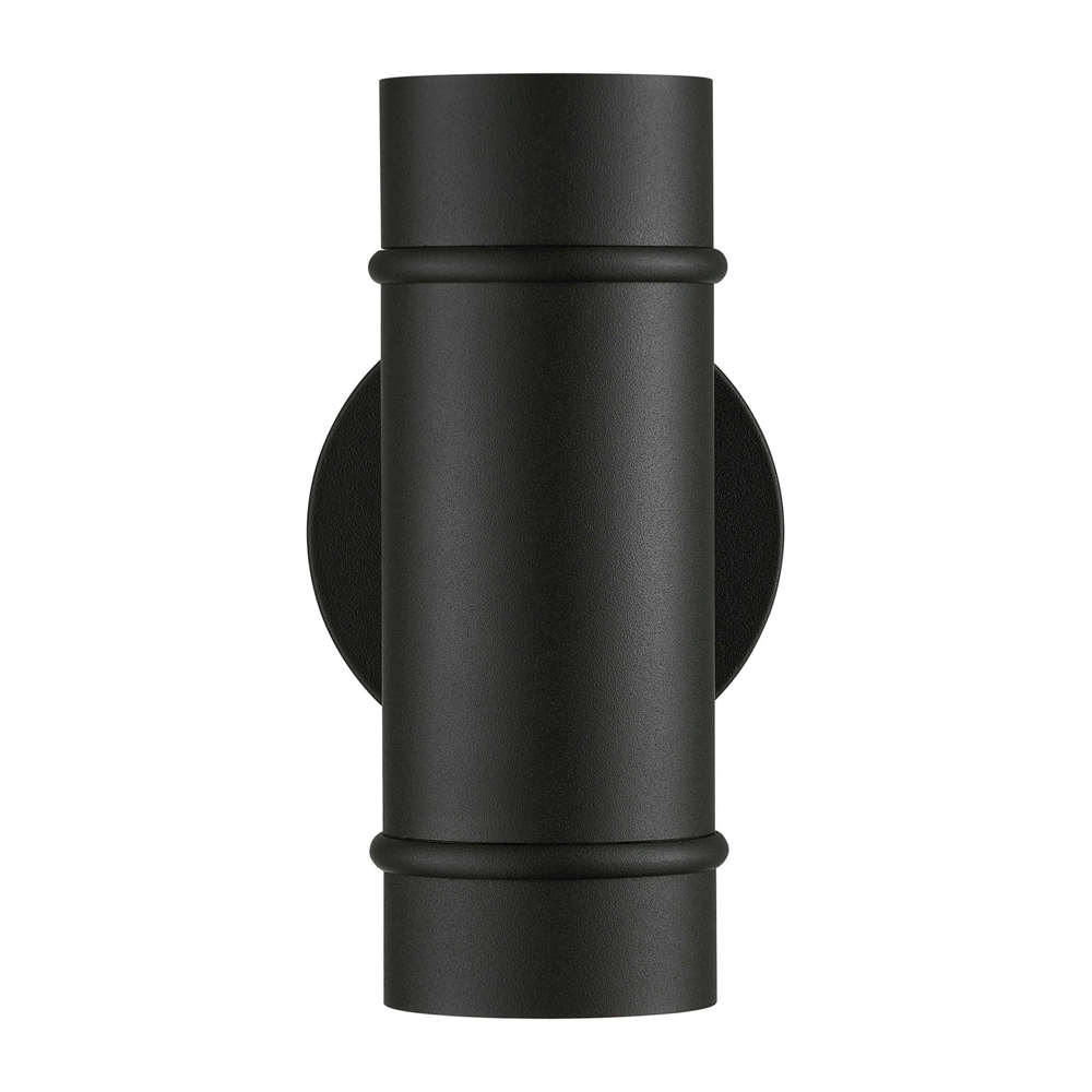 Elegancka zewnętrzna lampa ścienna z oświetleniem skierowanym zarówno w górę, jak i w dół, tworząca piękne efekty świetlne na ścianie. Projekt pasuje do wielu środowisk zewnętrznych i budynków w różnych stylach.