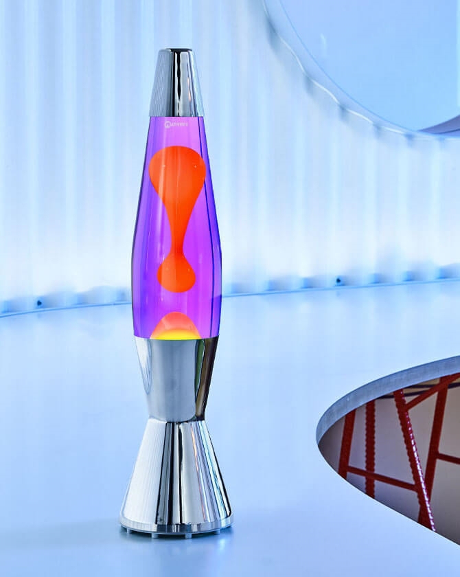 Lampa lawa Astro Baby wprowadzona na rynek w 1964 roku została zaprojektowana przez Edwarda Cravena Walkera, który wynalazł lampę lawę i założył Mathmos. Ta wersja posiada ręcznie obrabianą podstawę i górę z aluminium z polerowanym srebrnym wykończeniem. Butelka w kolorze fioletowym z pomarańczową lawą jest ręcznie napełniana i oparta na unikalnej recepturze lampy lawy Mathmos, która zapewnia do 2000 godzin użytkowania, zanim butelka będzie musiała zostać wymieniona.