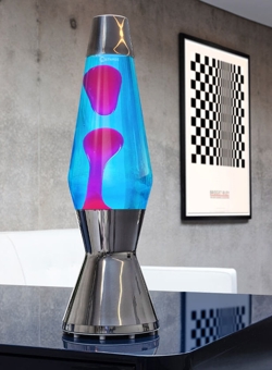 Oryginalna lampa lawa Astro zaprojektowana w 1963 roku przez Edwarda Cravena Walkera, który wynalazł lampę lawową i założył Mathmos. Ta wersja klasyka designu ma ręcznie obrabianą podstawę i górę z aluminium z polerowanym srebrnym wykończeniem. Butelka w kolorze niebieskim z różową lawą jest ręcznie napełniana i oparta na unikalnej recepturze lampy lawowej Mathmos, która zapewnia do 2000 godzin użytkowania, zanim butelka będzie musiała zostać wymieniona.