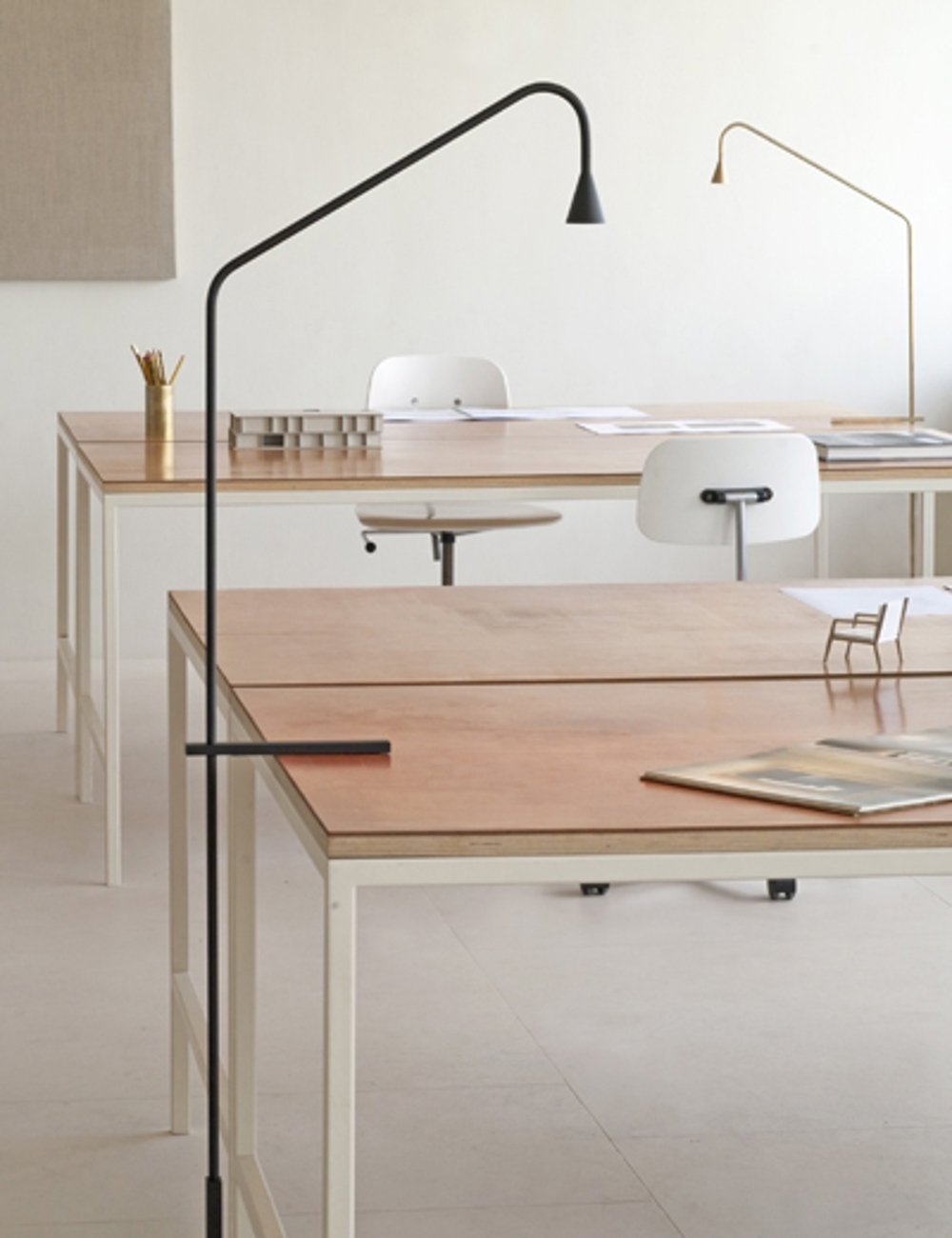 Trizo21 Austere T lampa stołowa zaprojektowana przez Hansa Verstuyfta.