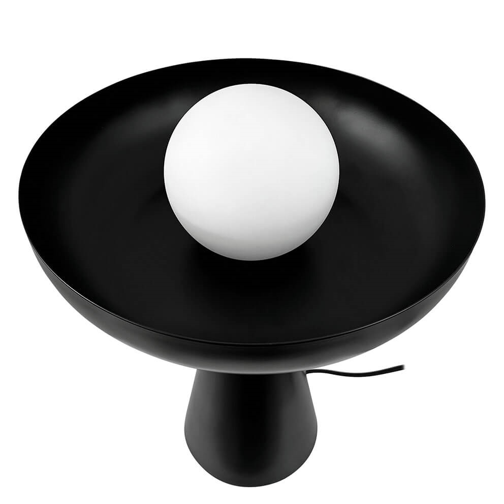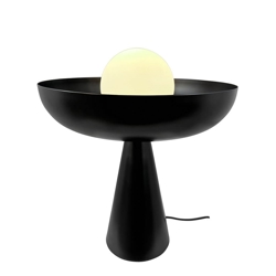 Ava lampa stołowa z szklaną kopułą to stylowa i wyrafinowana lampa, która nie tylko zapewnia przyjemne światło, ale także stanowi elegancki element dekoracyjny w Twoim domu. Połączenie czarnego metalu i pięknej szklanej kopuły tworzy unikalną lampę stołową do salonu i innych miejsc, gdzie wystrój wnętrza wzbogaca się dzięki świecącej kopule w pięknej otwartej misie.