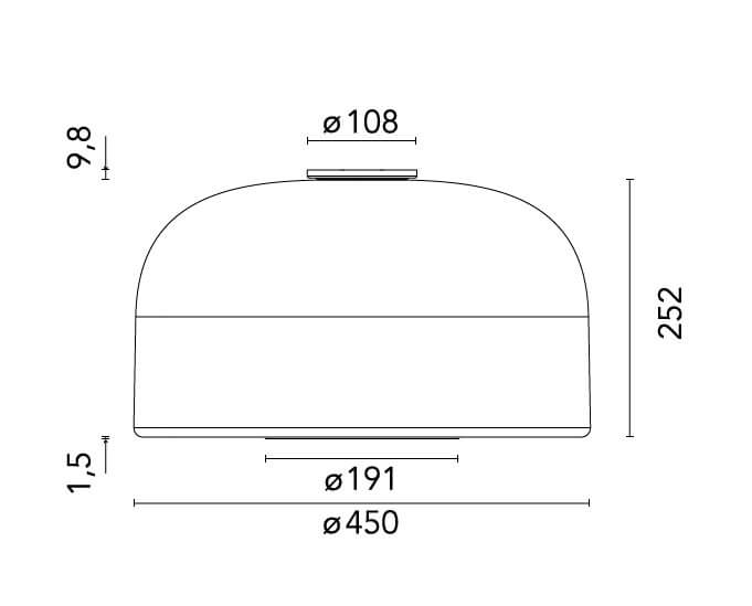 Klosz składa się z opalowego szkła, które jest zbudowane jako kanapka z trzech warstw szkła z białą warstwą umieszczoną pomiędzy dwoma przezroczystymi. Otwór na dole klosza jest chroniony przez białą aluminiową obręcz.