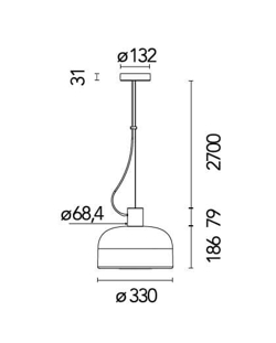 Klosz wykonany jest z opalowego szkła, które składa się z trzech warstw szkła, z białą warstwą umieszczoną pomiędzy dwoma przezroczystymi. Otwór na dole klosza jest chroniony przez pierścień z aluminium, który pasuje do górnej części lampy wiszącej.