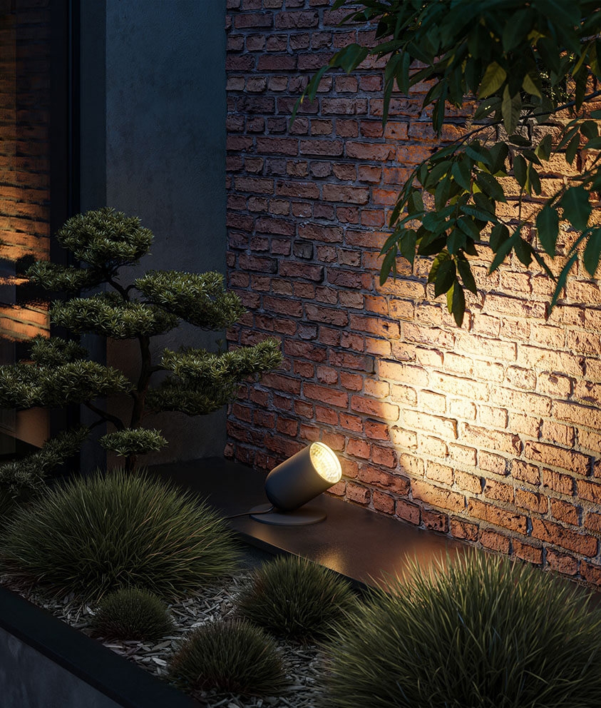 Lampa zewnętrzna Bik.4 Base to solidna i elastyczna lampa punktowa, która jest umieszczana na stałym podłożu. Głowica lampy może być pochylana i obracana o ponad 300°, co pozwala na zmianę kierunku światła według życzenia i potrzeb. Bik.4 z reflektorem z odlewanego ciśnieniowo aluminium jest malowana proszkowo w kolorze antracytowym i dzięki klasyfikacji IP65 oprawy oraz IP44 wtyczki nadaje się do użytku na zewnątrz.