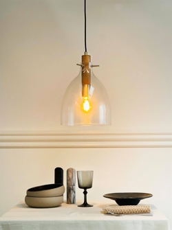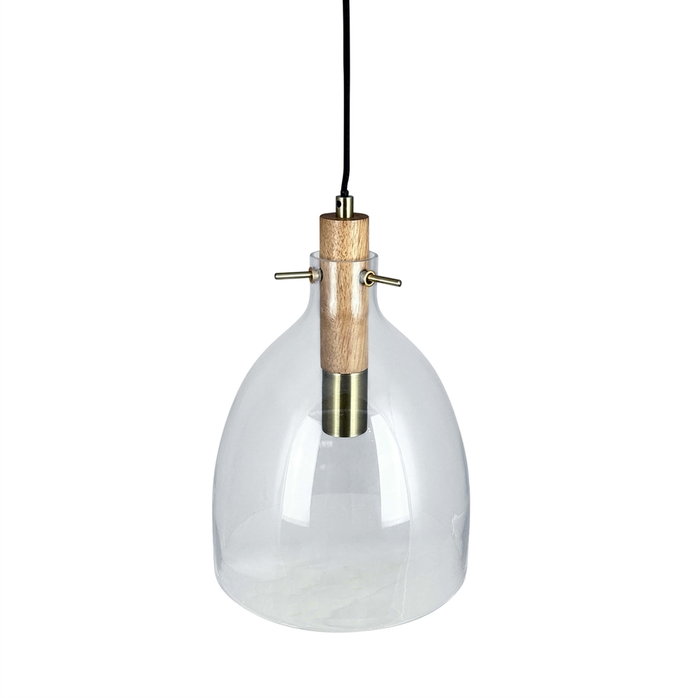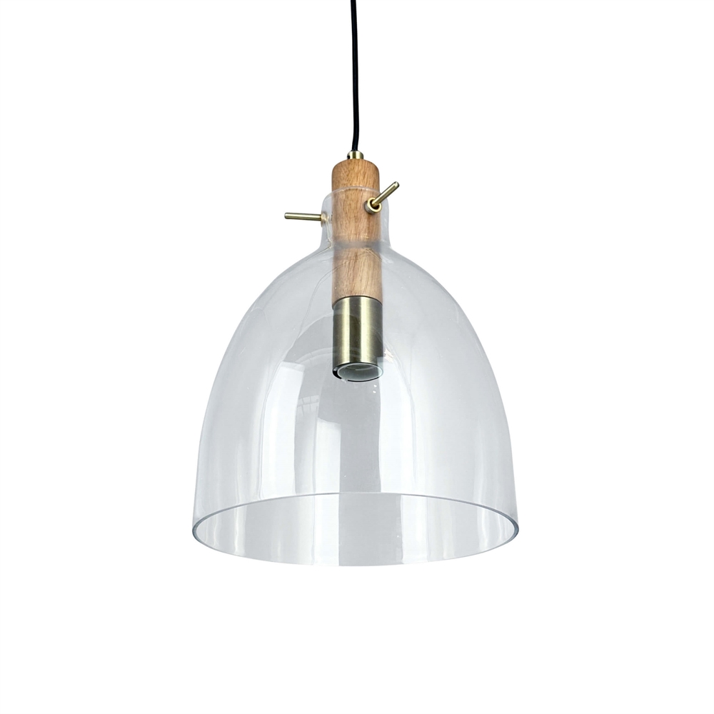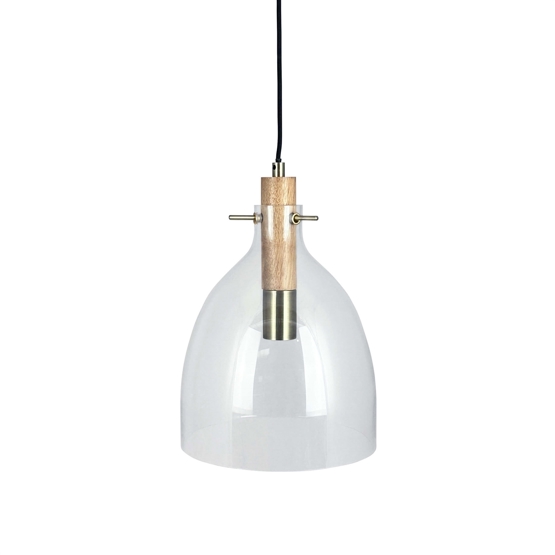 Dyberg Larsen Bistro D25 lampa wisząca, przezroczysta/dąb/mosiądz