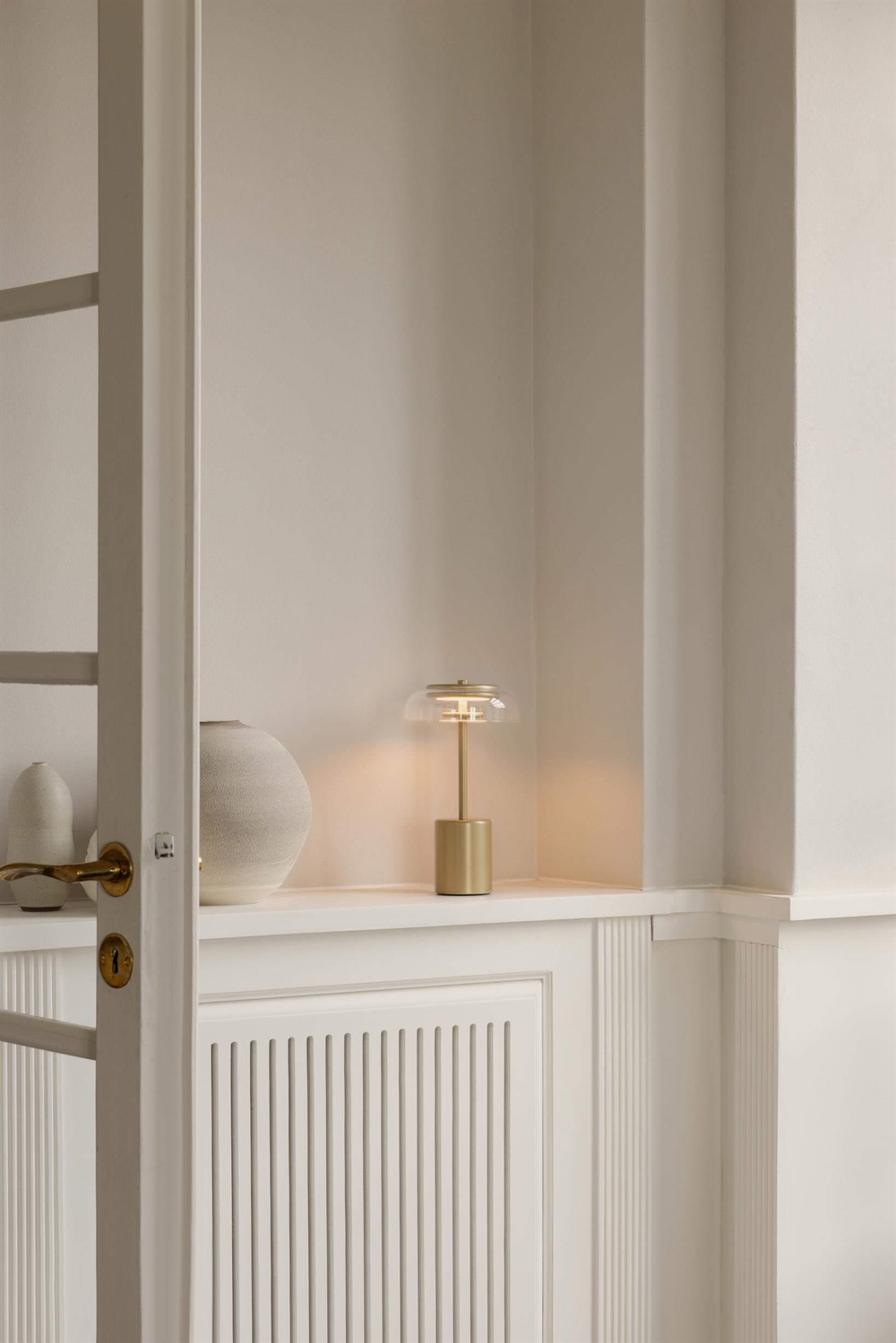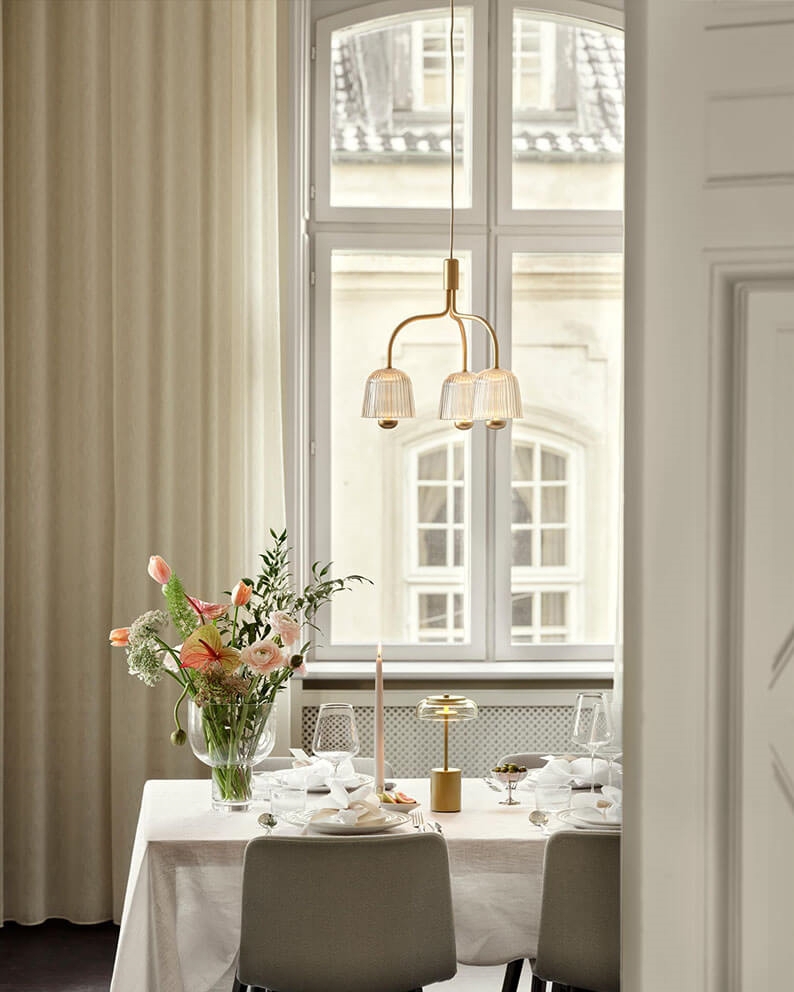 Nuura Blossi Mini Portable lampa stołowa/lampa na baterie, nordic złoty/przezroczysty - zaprojektowana przez Sofie Refer