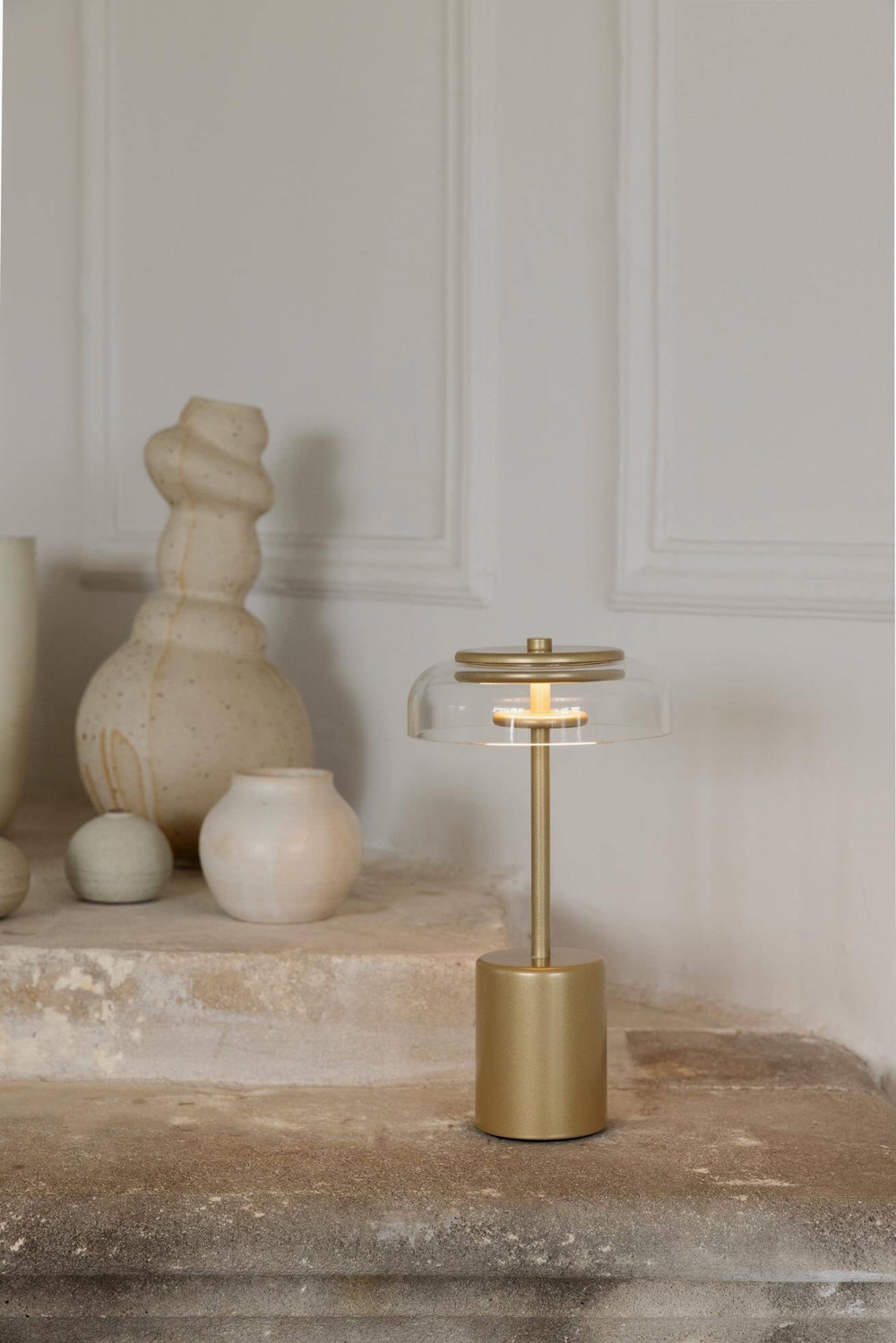 Blossi Mini Portable lampa stołowa / lampa na baterie, nordic złoty/przezroczysty