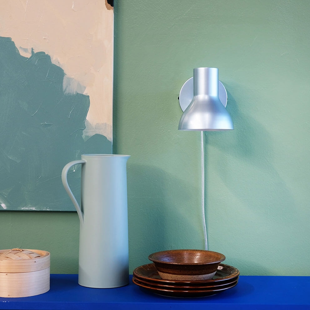 Kinkiet Bob z eleganckim metalicznym wykończeniem to piękny duński design, który dodaje ekskluzywnego wyrazu Twojemu wnętrzu. Prosty i ponadczasowy kinkiet dostępny jest w trzech wariantach kolorystycznych: beżowym, niebieskim i zielonym, idealnych zarówno do nowoczesnych salonów, jak i pokoi. Klosz można obracać i pochylać, dzięki czemu kierunek światła można łatwo dostosować, niezależnie od tego, czy kinkiet jest używany do czytania, pracy czy tworzenia przytulnej atmosfery. Przycisk włączania/wyłączania jest praktycznie umieszczony na podstawie.