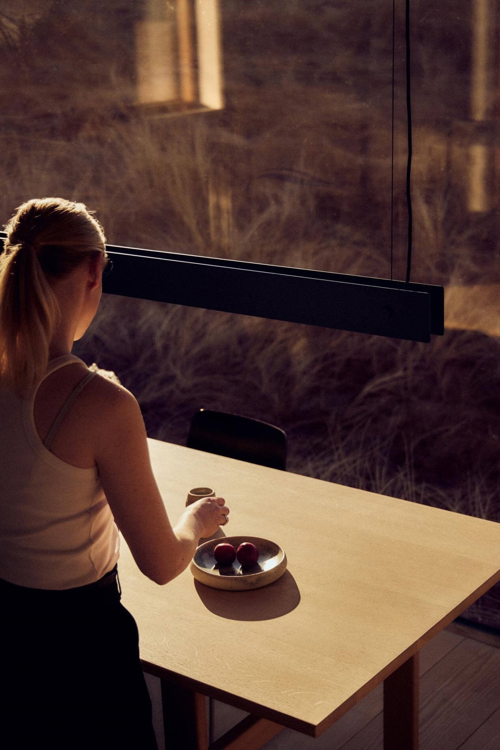 Pendel Bridge ma nowoczesny i minimalistyczny wygląd z prostymi liniami. Idealny jako lampa nad stołem, oświetlenie nad stołem konferencyjnym lub jako funkcjonalne światło nad blatem kuchennym lub w biurze czy innym profesjonalnym środowisku. Wąski pendel ma bezpośrednie światło skierowane w dół, które pięknie uzupełnia światło skierowane w górę.