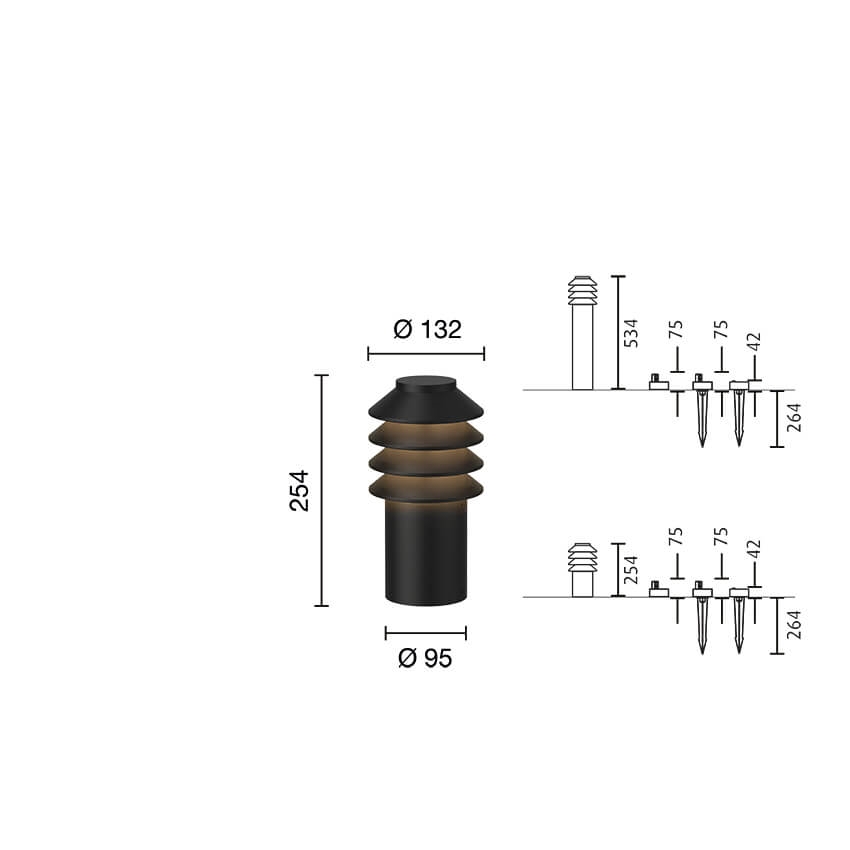 Lampa jest idealna do ogrodu i dostępna w dwóch różnych wysokościach. Ponadto dostępna jest z różnymi opcjami instalacji oraz z temperaturą barwową 2700K i 3000K.