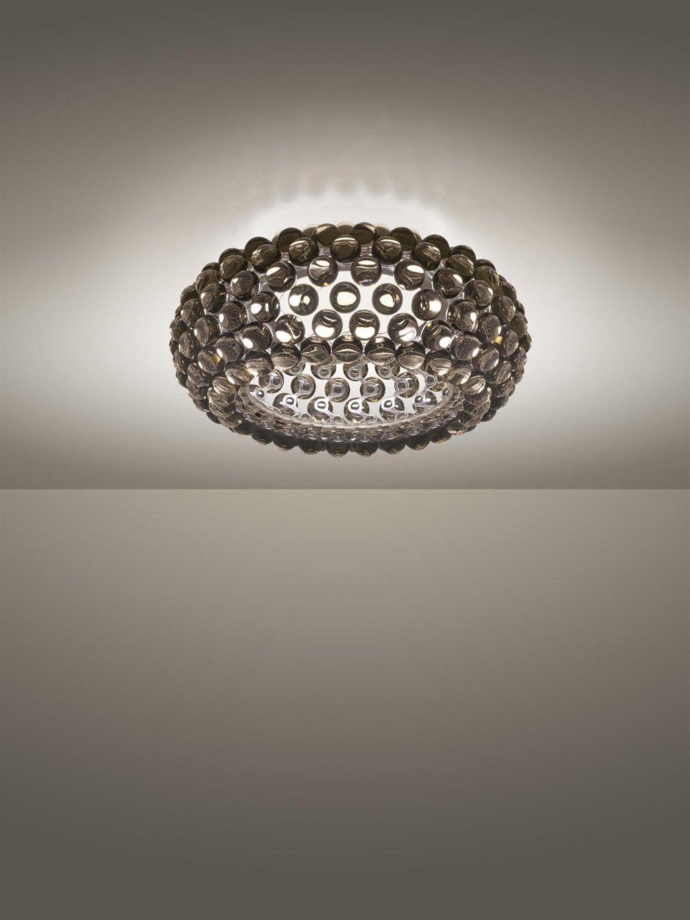 Caboche Plus lampa sufitowa dostępna jest w dwóch kolorach: przezroczystym i szarym. Ponadto Caboche Plus lampa sufitowa dostępna jest również w wersji nieściemnialnej i ściemnialnej.