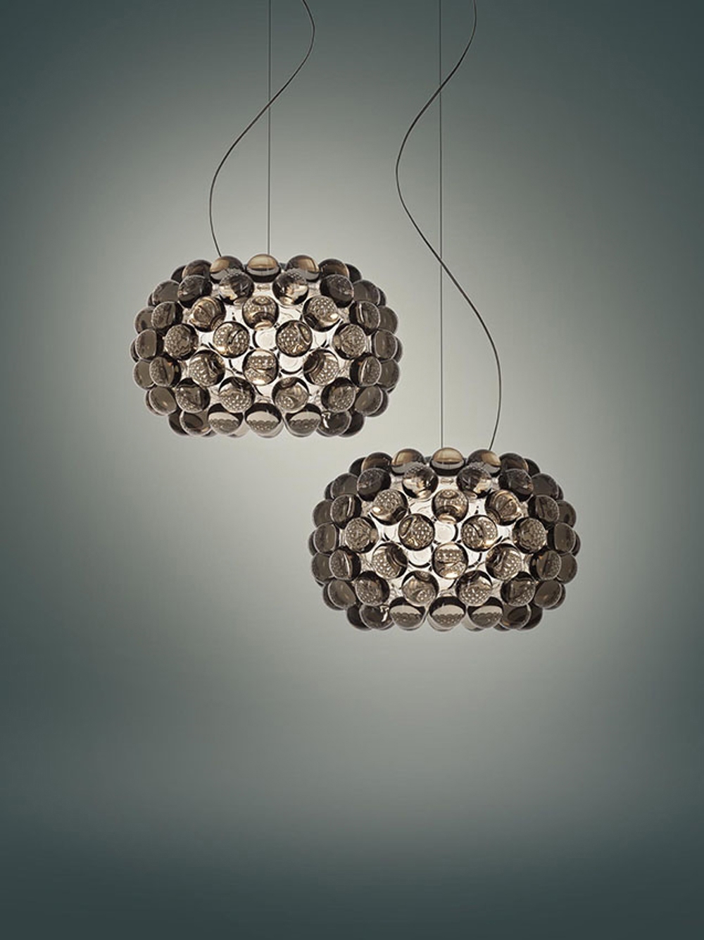 Lampa wisząca Caboche Plus dostępna jest w dwóch kolorach: przezroczystym i szarym.