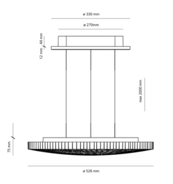 Wymiary: Ø 52,6 cm - 7,5 cm wysokość - podstawa: Ø27 cm