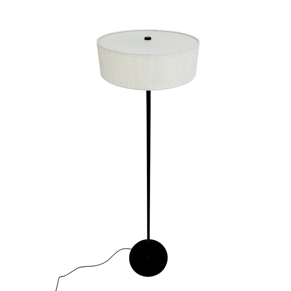 Dyberg Larsen Calix lampa podłogowa w czarnym kolorze z naturalnym, okrągłym materiałowym abażurem