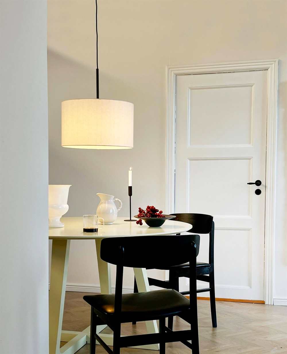 Lampa wisząca Calix z niskim abażurem to elegancki duński design o nowoczesnym nordyckim wyrazie. Abażur lampy z dyskretną górną płytą zapewnia stonowane i zrównoważone oświetlenie z miękkim i przyjemnym światłem. Idealna jako oświetlenie nad stołem jadalnym lub lampa wisząca w salonie, sypialni lub każdym innym pomieszczeniu, gdzie przyczyni się do stworzenia ciepłej i przytulnej atmosfery.