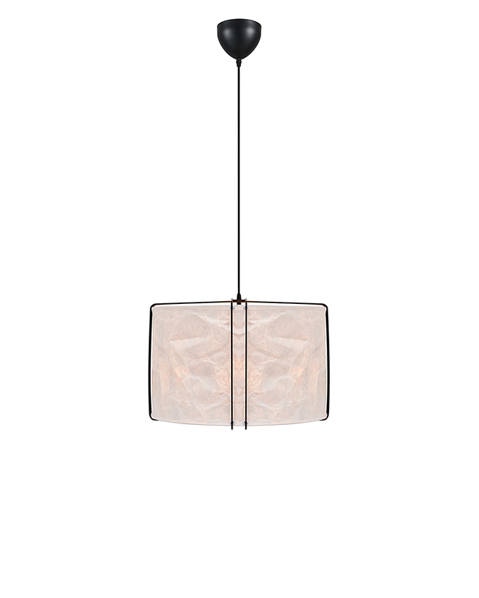 Seria Cardine ma nowoczesny japoński wyraz, który łączy się z nordyckim minimalizmem. Lekko pomarszczony papierowy klosz jest zawieszony na cienkich metalowych drutach i zapewnia przyjemne, rozproszone światło.