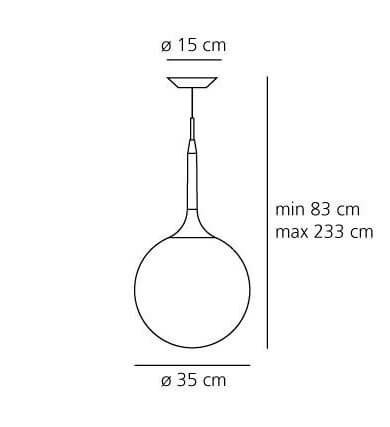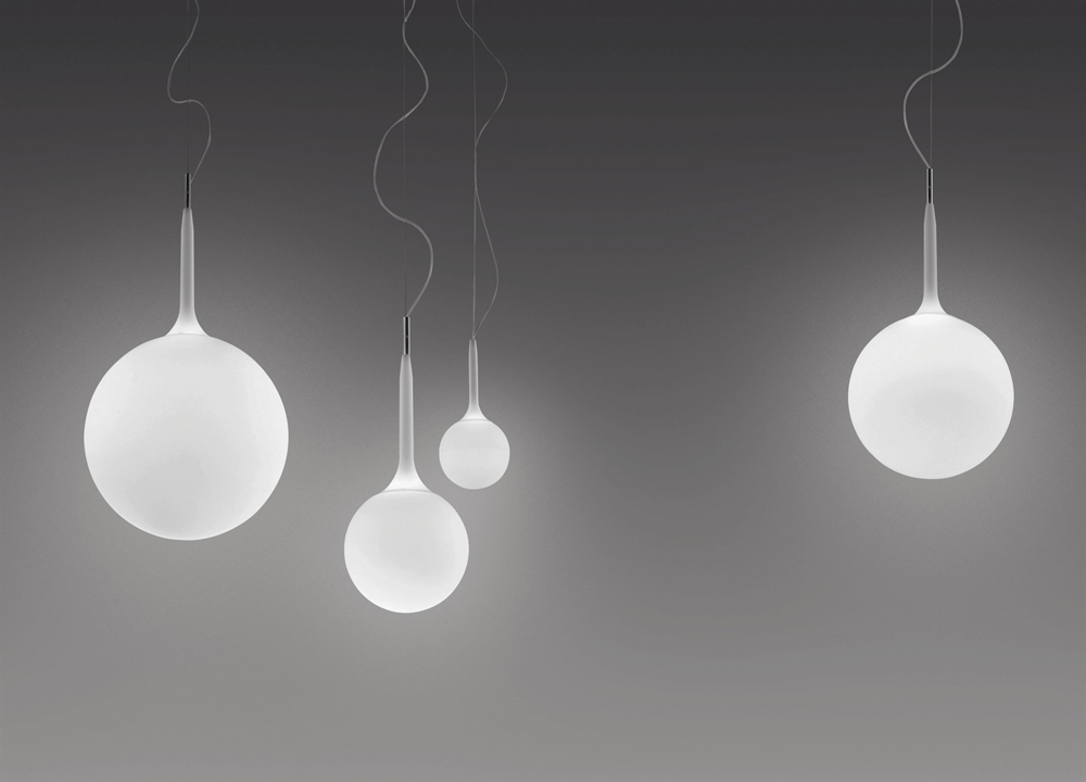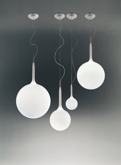 Castore lampa wisząca dostępna jest w różnych rozmiarach oraz jako lampa stołowa lub lampa podłogowa.