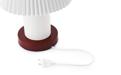 Lampa stołowa Cellu ma klasyczny, składany klosz i prezentuje się w nowoczesnym stylu. Klosz wykonany jest z PVC i spoczywa na malowanej proszkowo aluminiowej podstawie oraz stalowej bazie.