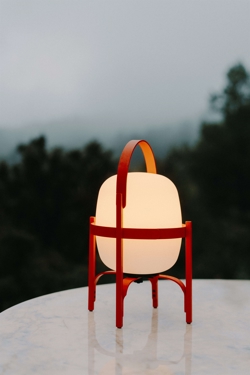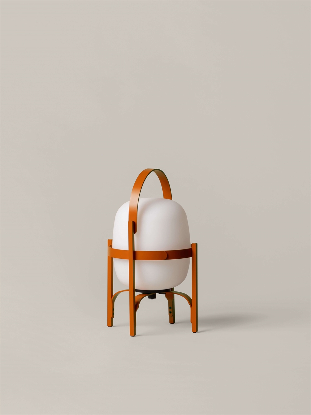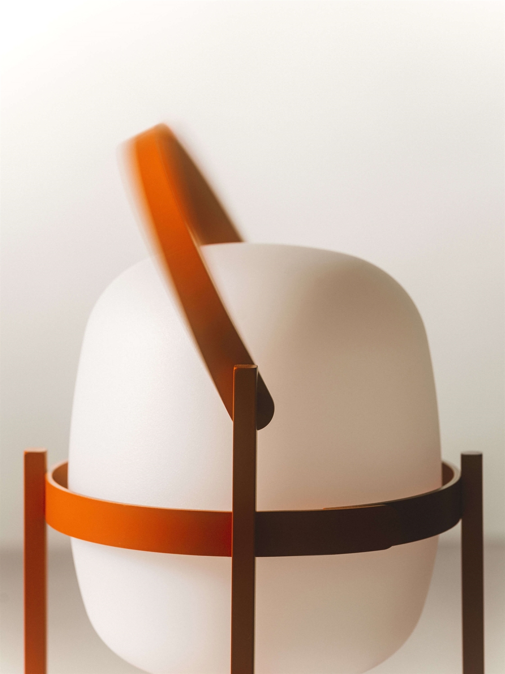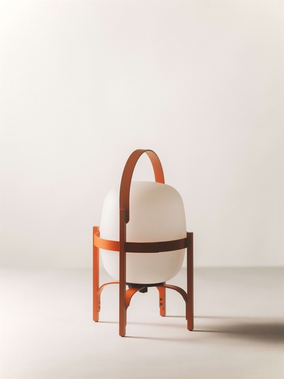 Cestita Alubat lampa na baterie/lampa stołowa w czerwonawym pomarańczowym - zaprojektowana przez Miguel Milá dla Santa & Cole