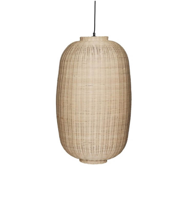 Ta piękna lampa wisząca nadaje bardzo naturalny i spokojny wyraz. Światło jest naprawdę przyjemne dzięki plecionej strukturze klosza. Lampa ma piękny owalny kształt, który świetnie wygląda nad stołem jadalnym, ale równie dobrze sprawdzi się w sypialni.