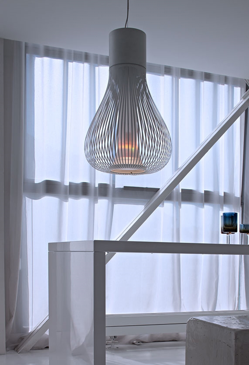 Lampa wisząca ma elastyczną formę – i jest elegancka w wyrazie. Dostępna w kolorze czarnym i białym.