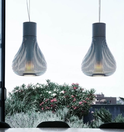 Zewnętrzny klosz składa się z małych lameli, które można regulować, aby zmienić kształt - i lampa może stać się szersza lub węższa.