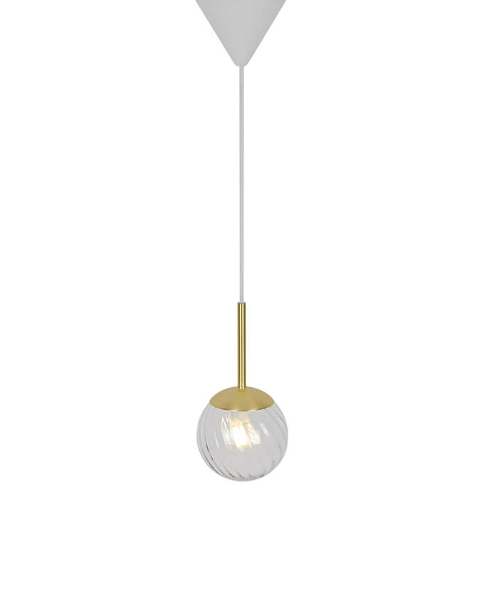Lampa wisząca Chisell tworzy piękny wzór dzięki wirującej szklanej kuli, która rozprasza światło wokół lampy. Szkło jest dmuchane ręcznie, a lampa ma piękne detale z mosiądzu. Ze względu na ręcznie dmuchane szkło mogą wystąpić małe pęcherzyki powietrza w szkle. Jednak to właśnie nadaje lampie jej charakter i żywy wygląd.